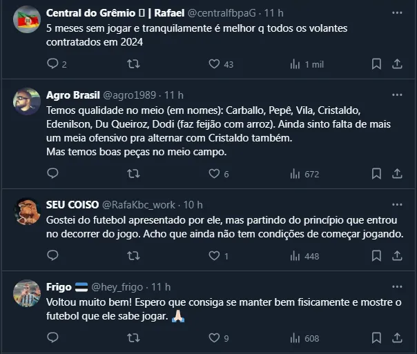 Gremistas falam de Carballo