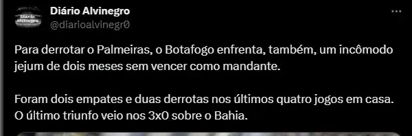 Por outro lado, o Botafogo enfrenta dificuldades em sua própria casa, não tendo conquistado uma vitória nos últimos quatro jogos. Sofreu derrotas contra Flamengo e Cuiabá, além de ter empatado com Goiás e o Furacão.
