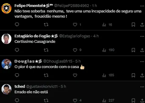 O colunista apontou para o momento crucial em que o elenco alvinegro optou por Lucio Flavio como treinador, sucedendo Luís Castro. Essa mudança, segundo Casagrande, reflete uma escolha do grupo de jogadores, mas a falta de comprometimento em campo evidenciou uma atitude soberba.