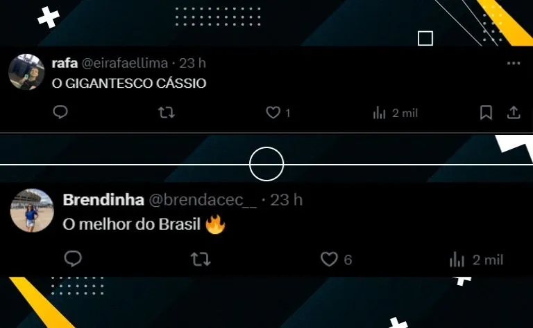 “Cássio é um gênio como goleiro. A performance do Cássio foi incrível. Cássio é um goleiraço que, quando está em forma, como agora, é capaz de fazer defesas espetaculares. A vitória por 3 a 0 foi justíssima, mas tudo começa com a segurança que Cássio passou para sua equipe”, disse Casagrande, em sua coluna no portal UOL.