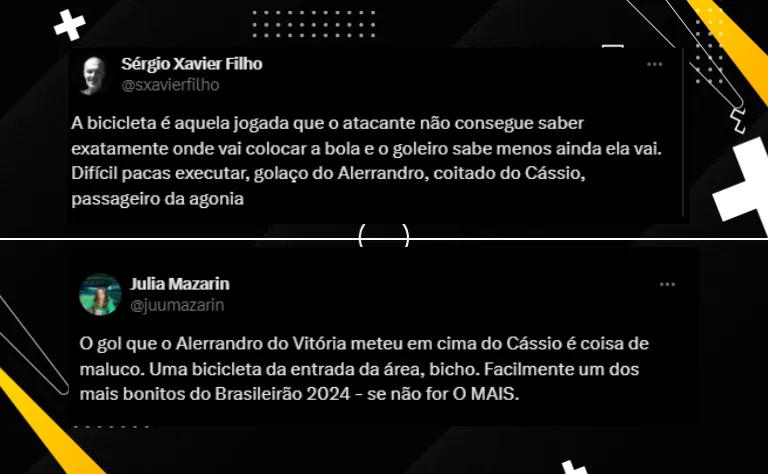 Na última segunda-feira (19), o Cruzeiro empatou com o Vitória, em 2 a 2. A partida foi válida pela 23ª rodada do Campeonato Brasileiro, sendo marcada por um golaço de Alerrandro.