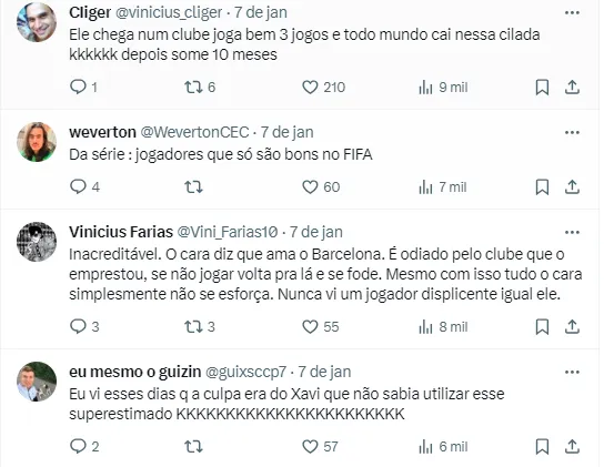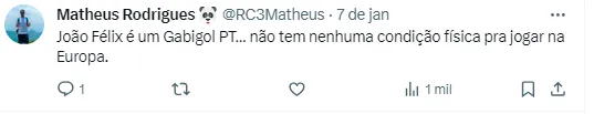 Depois disso, além de Atlético de Madrid e Barcelona, João Félix ainda atuou pelo Chelsea, da Inglaterra. O atacante surgiu como uma das grandes promessas do futebol português, mas os últimos anos não vêm sendo bons pra ele.
