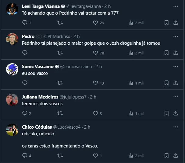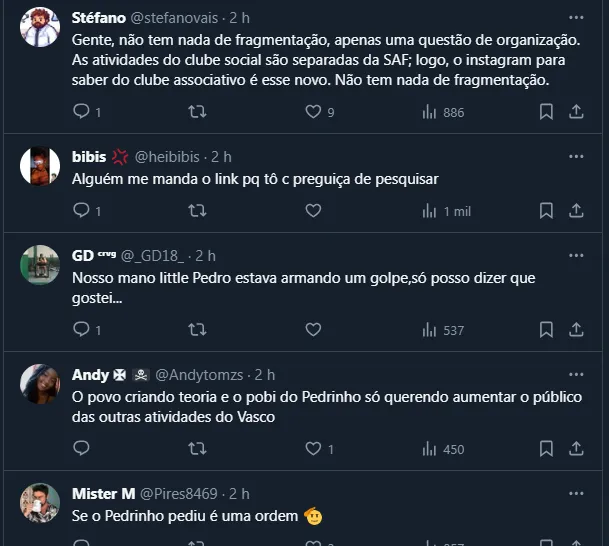 Inclusive, o tema gerou uma grande incógnita, já que vários vascaínos ficaram sem entender a relevância da publicação. Confira algumas das reações da torcida na web:
