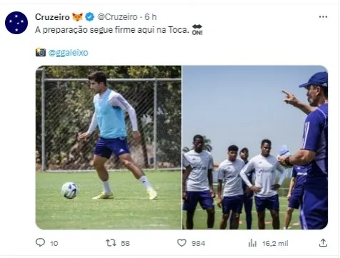 A equipe segue a sua preparação, tenta garantir os três pontos e a recuperação após derrota na última rodada. O próximo confronto do Cruzeiro é o clássico contra o rival América-MG. A partida é válida pela 25ª rodada do Campeonato Brasileiro e acontece no Estádio do Mineirão, às 16h (horário de Brasília), no próximo domingo (1).