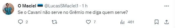 “Lógico que sim. Era só o que faltava ter gente achando que o Cavani não presta”, disse um torcedor. Outro revelou que ele é ótimoo para substituir Suárez: “Serve demais! Qualquer jogador vai ser abaixo do Suárez, mas sabemos que o Cavani é muito bom. É melhor que todos que foram sondados até agora!”.