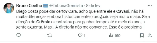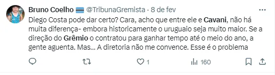 No entanto, mais uma vez, o negócio não evoluiu. Sendo assim, a diretoria pode continuar ativa no mercado para encontrar o seu tão sonhado novo 9. Um dos citados, já dividiu torcedores do Grêmio.