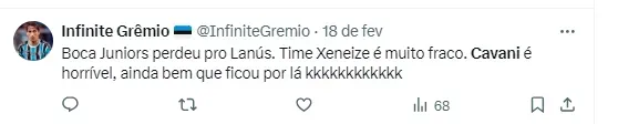 Muitos torcedores também vem tirando sarro de Cavani. Porém, há os torcedores xeneizes que ainda acreditam que o atacante possa render pelo Boca Juniors e que ele merece respeito por tudo que fez no futebol.