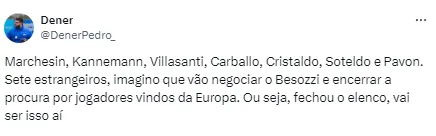 Na sequência da temporada, uma situação que chama atenção é sobre uma questão de estrangeiros dentro do elenco. Uma regra do futebol brasileiro é que no Brasil só pode ter sete atletas não brasileiros na lista de relacionados.
