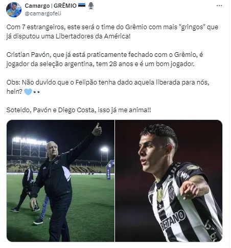 Vale destacar que desses nomes vários são importantes e tem status de titular, casos do goleiro Marchesin, dos três meio-campistas e dos atacantes Pavón e Soteldo, com isso, a aprovação do aumento de estrangeiros ajudaria demais o time.
