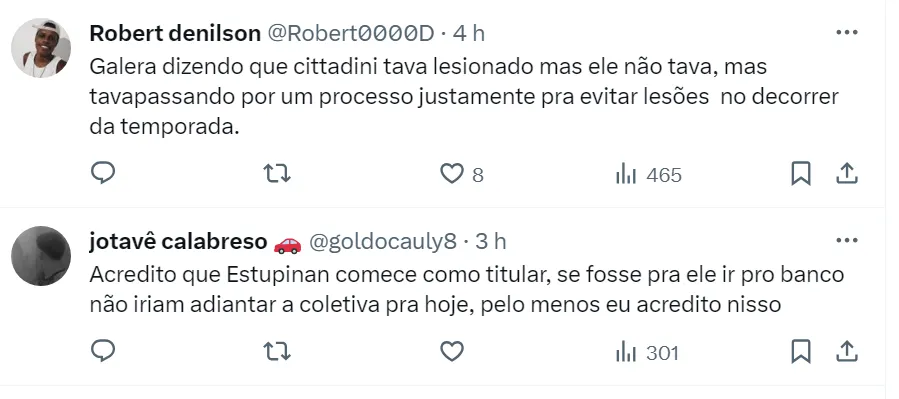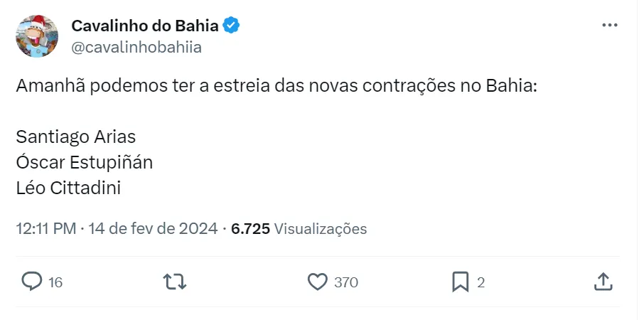 Cittadini, por sua vez, está no Tricolor Baiano desde o ano passado e pode fazer o seu primeiro jogo na temporada. No Brasileirão de 2023, ele fez sete partidas e pode jogar de volante e meia.