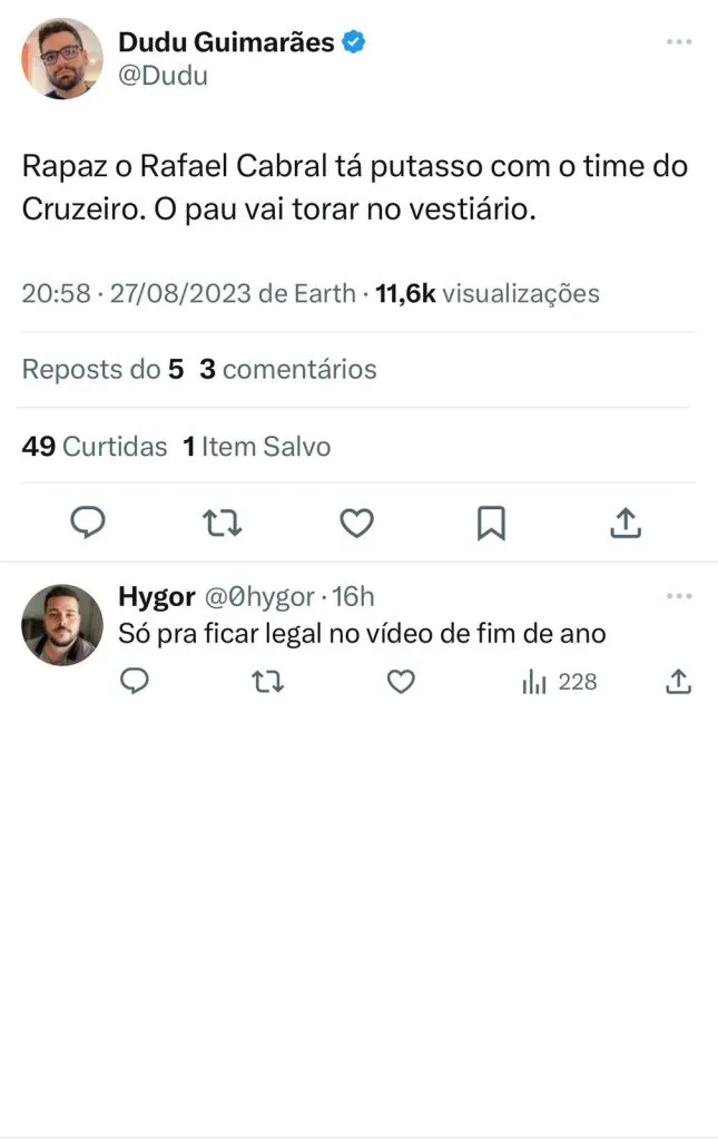 “Desde o começo do campeonato, fomos super competitivos. Jogamos de igual para a igual. Deixamos muito a desejar. Por isso, a cobrança é feita internamente. Ganhar, perder e empatar é do jogo. Mas têm certas coisas que são inegociáveis. E a gente tem que ter noção da grandeza do clube e da camisa que a gente veste. Quem está aqui há mais tempo, sabe da dificuldade que foi voltar. A atitude teria que ser diferente hoje“, explicou Rafael Cabral que continuou