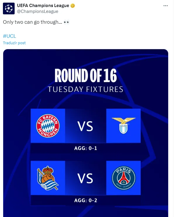 Nesta terça-feira (5), os 16 times classificados deram início à disputa das partidas de volta das oitavas de final da Champions League. Os times entram em campo com foco total na classificação para as quartas de final.