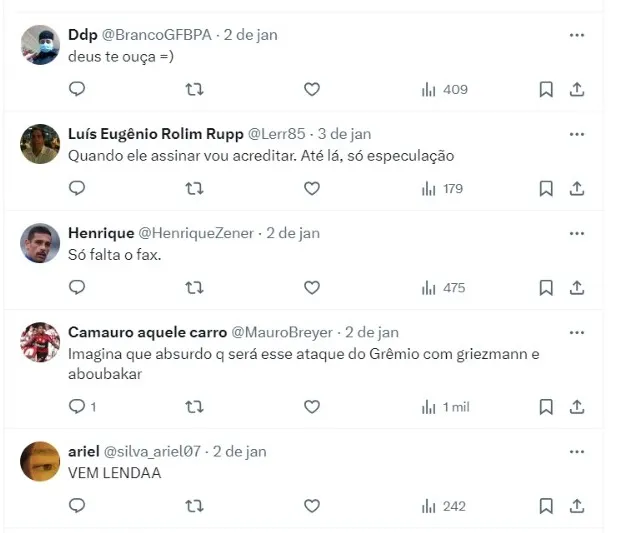 Nos dois contatos, a resposta foi negativa sobre a possibilidade de vir para o Brasil, mas existe uma esperança da direção de que vai conseguir apresentar um projeto convincente para o jogador, principalmente por conta da não chegada de oferta da Europa por ele.