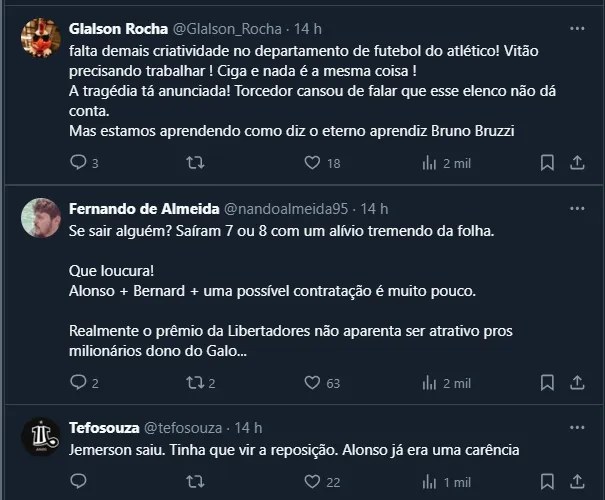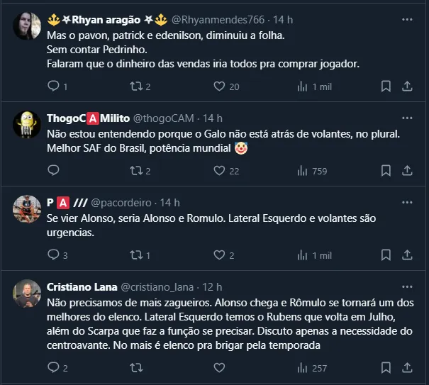 Entretanto, se o torcedor do Alvinegro de Belo Horizonte estava esperando maiores movimentações na janela de julho, a tendência é que outros nomes só cheguem em caso de saída, de acordo com informações do setorista Lucas Tanaka.