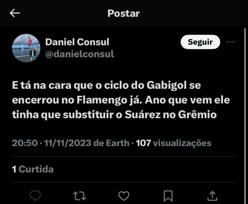 Diante disso, nas redes sociais, a torcida do Grêmio pensa adiante e pediu a chegada do jogador do Flamengo para o lugar de Suárez, que não ficará para 2024: (SIC) “Tá na cara que o ciclo do Gabigol se encerrou no Flamengo. Ano que vem ele tinha que substituir o Suárez no Grêmio”; “Aceito Gabigol e Cebolinha no Grêmio”, foram alguns comentários.
