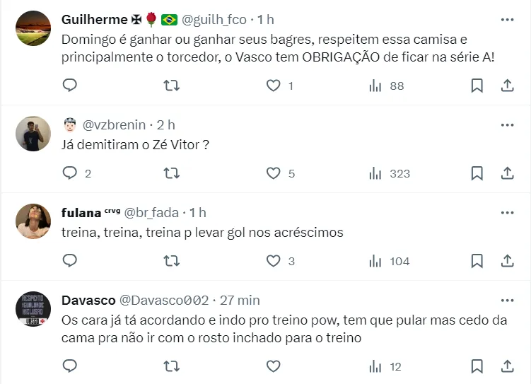 Assim, o Vasco terá que jogar a vida na última rodada contra o Bragantino para se livrar do rebaixamento, e ainda torcer por resultados negativos de outros postulantes à Série B.