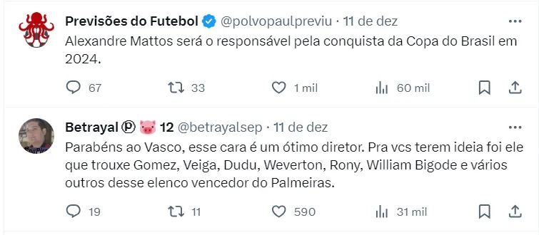 Mattos está confiante que vai contribuir para o trabalho de Ramón Díaz em 2024. “Um desafio do tamanho do Vasco: gigantesco. Mas, como profissional que sou e adoro desafios, estou encarando com muito orgulho e honra. Essas são as duas palavras que eu posso dizer”, concluiu.