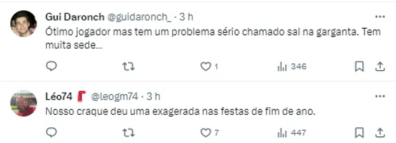 “As melhores sensações possíveis, de felicidade e gratidão pelo clube pela oportunidade. Que eu possa honrar essa camisa da forma que ela tem de ser honrada. Recebi muitas mensagens, muito carinho e acompanhei bastante (a repercussão de sua chegada).