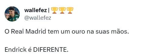 Em entrevista coletiva prévia à partida diante do Braga, Ancelotti afirmou que Endrick mereceu ser convocação por estar atuando em bom nível e que a decisão de Diniz não o surpreendeu.