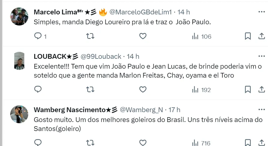 Sem o título brasileiro, o Botafogo já pensa no próximo ano e na disputa da Copa Libertadores. Um nome na mira de John Textor no Alvinegro é o goleiro João Paulo, do Santos.