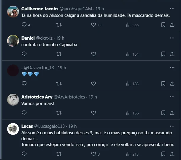 Torcida critica desempenho de Alisson