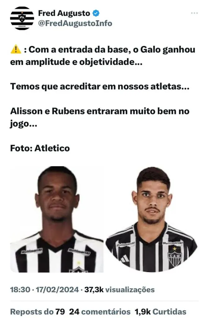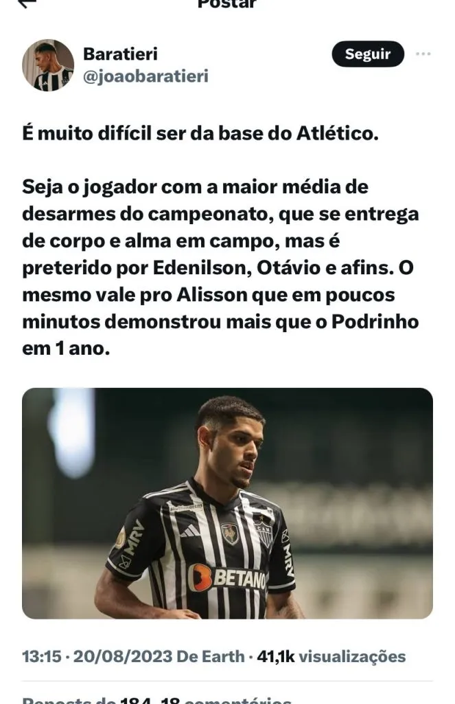 “Vão jogar, vão ganhar muitos minutos, certo. (…) Têm condição de jogar e se destacar, de entender o que pretendemos e estão preparados para jogar, de titular, de entrar e dar soluções”, finalizou o treinador do Galo. Além disso, a com a possibilidade de saída de Eduardo Vargas e sem ir ao mercado, é provável que realmente mais jogadores da base sejam acionados.