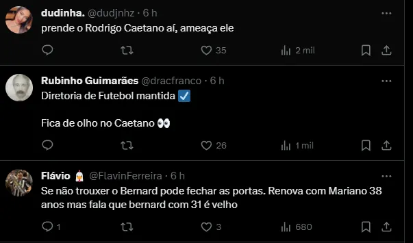 Para reforçar o elenco, o Galo trabalha atualmente em Bernard, o mesmo campeão pela equipe na histórica Libertadores de 2013. Atualmente, o atacante de 31 anos está no Panathinaikos, da Grécia.