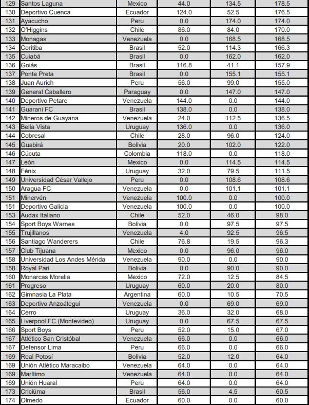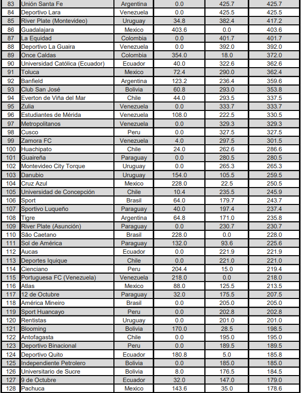 Confira o ranking do Conmebol 2023: