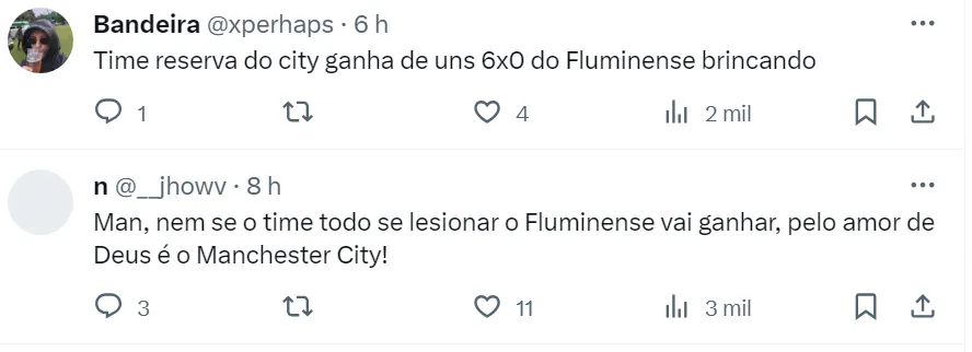 Em uma possível final, os Citizens podem encontrar o Fluminense, atual campeão da Copa Libertadores. Outra possibilidade bastante comentada é enfrentar o Al-Ittihad, da Arábia Saudita, que tem os badalados Benzema e Kanté.
