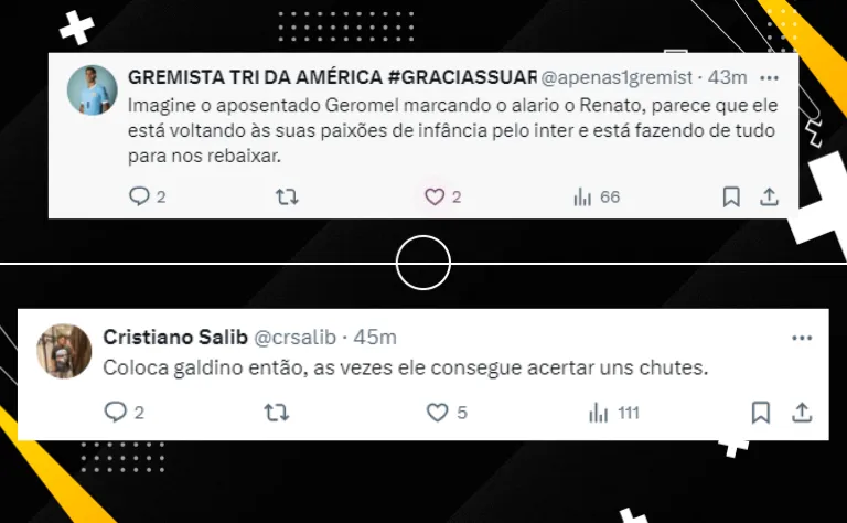 Os torcedores reclamaram, além de JP, a presença de Geromel, e não conseguem entender como o Renato colocou o jogador, que se recuperou de lesão, em um jogo tão importante.
