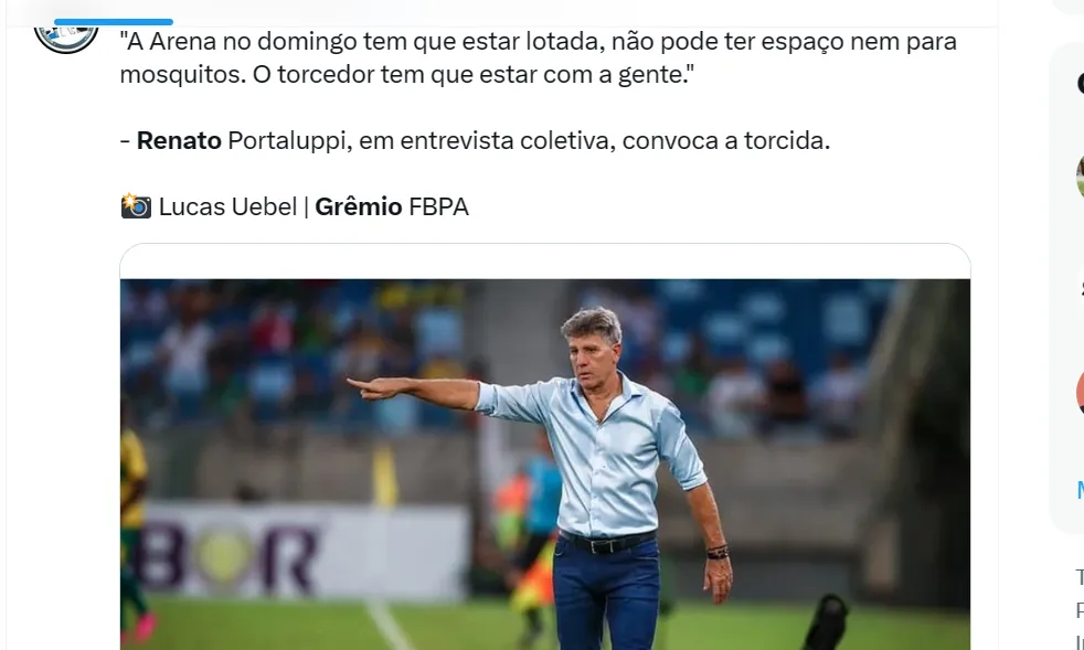 “Agora posso dizer que estamos no páreo. Domingo, a Arena tem que estar lotada, não pode ter espaço nem pra mosquito”, declarou Renato em entrevista ainda em São Januário.