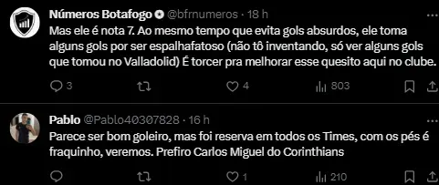 O Botafogo, em sua busca por reforços para a próxima temporada, voltou suas atenções para o goleiro John, atualmente emprestado ao Real Valladolid, da Espanha, segundo informações do “Canal do TF” e confirmadas pela Trivela.