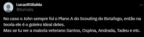 Não é a primeira vez que John entra no radar do Botafogo; em 2022, antes da chegada de Lucas Perri, o clube tentou sua contratação. A posição de goleiro tornou-se uma das prioridades para o Botafogo em 2024, especialmente após a saída de Lucas Perri para o Lyon, da França.