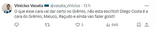A contratação de Diego Costa pelo Grêmio teve muito impacto. Ele é o grande nome do Imortal para a temporada e sua chegada vem dividindo torcedores. Enquanto alguns acham que ele dará muito certo, outros crêem que seu tempo já passou.
