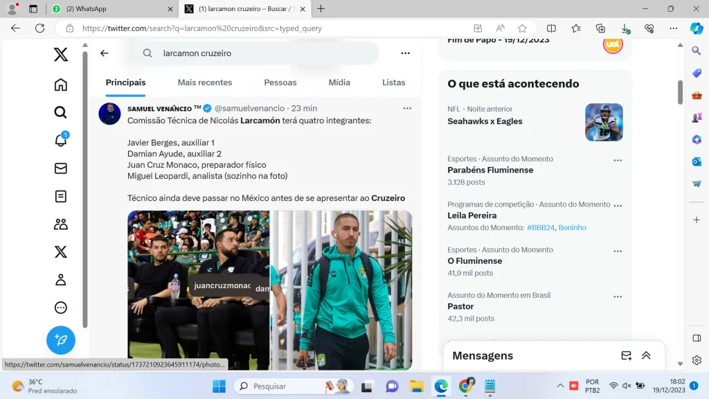 Nicolás Larcamón é a primeira contratação do Cruzeiro para 2024. As partes chegaram a um acordo para assinatura do contrato válido até o final de 2025, restando apenas detalhes burocráticos para o anúncio oficial.