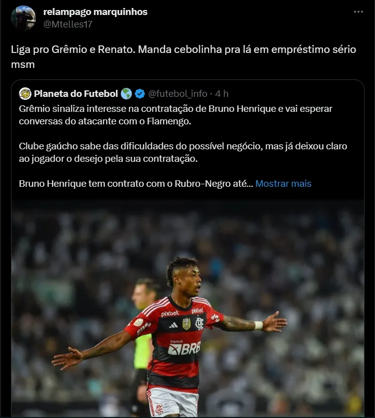 Trata-se de Everton Cebolinha, atualmente no Flamengo. Mas, desde que foi contrato, não vem conseguindo apresentando o futebol que era esperado. Vale destacar, inclusive, que o jogador acabou perdendo espaço desde a chegada do técnico Jorge Sampaoli, além do retorno de Bruno Henrique após a lesão. Após um lance no clássico contra o Botafogo, onde o jogador não aproveitou a chance de chutar a bola no gol que estava vazio, acabou gerando críticas por parte dos torcedores.