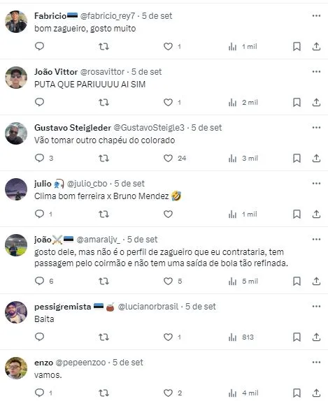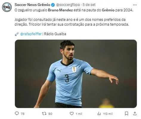 O setor defensivo é uma das prioridades da direção Tricolor, que está atenta nas negociações de Bruno Méndez, que vive um impasse para renovar seu contrato com o Corinthians. O Grêmio sabe que tem a concorrência do Flamengo e Inter pelo defensor.