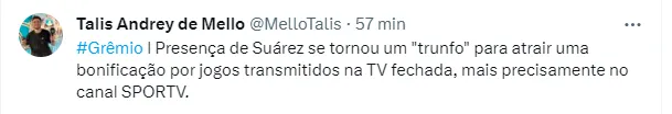 Com Suárez, o Grêmio segue no seu objetivo de subir na tabela de classificação do Campeonato Brasileiro. Atualmente em terceiro lugar, com 36 pontos, a equipe comandada por Renato Portaluppi só está atrás do Palmeiras, com 40, e do Botafogo, disparado na liderança com 51 pontos. O Grêmio volta a campo no próximo domingo (3), quando recebe o Cuiabá.