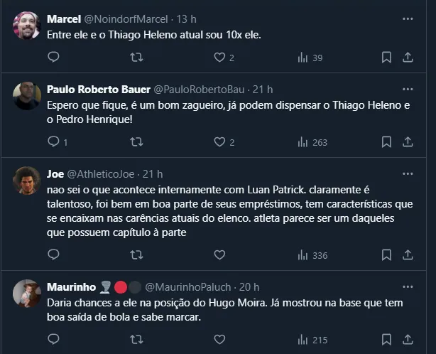 Por fim, outro “reforço” de última hora que Osorio deve ter é o zagueiro Luan Patrick, revelado pelo próprio Furacão e que esteve emprestado ao Red Bull Bragantino na última temporada. Ele também esteve com a Seleção Sub-23 na disputa do Pré-Olímpico.