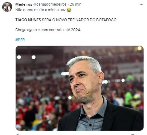 No entanto, no começo da noite veio a confirmação e o acerto. De acordo com o jornal O Globo, Tiago Nunes, assinou com o Bota e será o comandante do Alvinegro nas rodadas finais do Brasileirão.