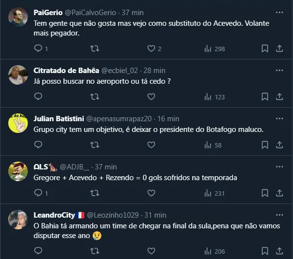 É interessante deixar claro que, além do trio de reforços já mencionado, o Bahia de Rogério Ceni também deve manter seus grandes destaques de 2023 no elenco, como Thaciano, Biel e Cauly.