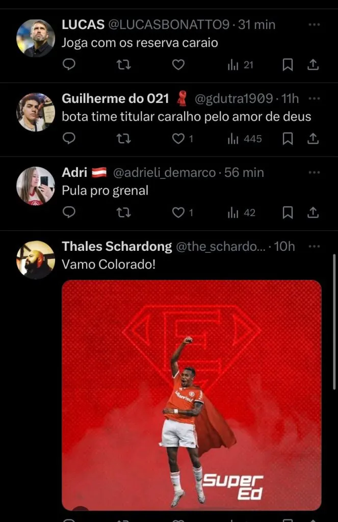 Veja o que dizem os torcedores do Internacional: