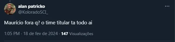Entretanto, como Maurício atuou na última partida contra o Brasil de Pelotas, sua ausência para o jogo de hoje (18) foi uma certa surpresa. Isso porque, como o torcedor já sabe, o atleta vem sendo alvo do Palmeiras.