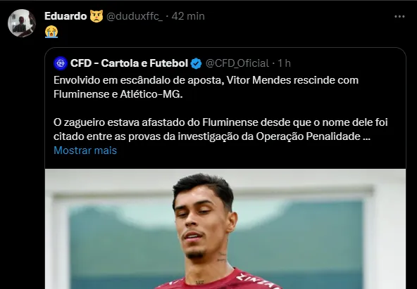 O jogador tinha contrato com o Atlético até o final de 2024 e agora está livre no mercado para continuar a carreira depois da suspensão. Vitor Mendes ainda tem passagens por Guarani, Boa Esporte, Juventude e Figueirense.