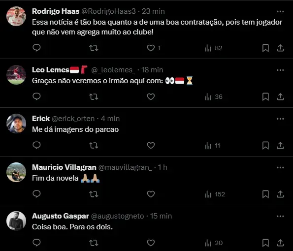 “Não vamos mudar o discurso. É um jogador fundamental para a história do Inter. É um colorado identificado e sempre terá portas abertas, mas são questões da vida profissional que colocam os jogadores em outros clubes”, afirmou.