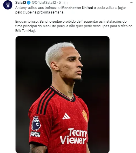 Em nota oficial, o clube inglês disse que decidiram sobre o retorno do atleta: “Desde que as alegações foram feitas pela primeira vez em junho, Antony tem cooperado com os inquéritos policiais tanto no Brasil quanto no Reino Unido e continua a fazê-lo. Como empregador de Antony, o Manchester United decidiu que ele voltará aos treinos em Carrington e estará disponível para seleção (brasileira), enquanto as investigações policiais continuam”.