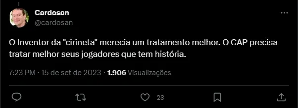 Os líderes do elenco, como Pablo, Fernandinho e Thiago Heleno, também foram comunicados da decisão do clube sobre Cirino. Nas redes sociais, torcedores lamentaram a situação, relembrando os feitos de Marcelo com a camisa do Furacão. Revelado pelo Clube, o atacante foi cinco vezes campeão paranaense, campeão da Sul-Americana em 2018, e da Copa do Brasil em 2019. Ele protagonizou a assistência para o gol de Rony, que ficou na memória dos apaixonados pelo Furacão.