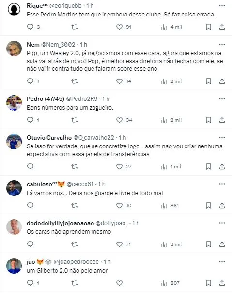 Nesta terça-feira (12), veio à tona que a Raposa abriu conversas para saber a situação de um jogador que despertou interesse no departamento de futebol Celeste. No entanto, segundo apuração do portal Globo Esporte, que expôs o interesse do Cabuloso, o Cruzeiro deve encontrar concorrência se quiser fechar com o atacante.