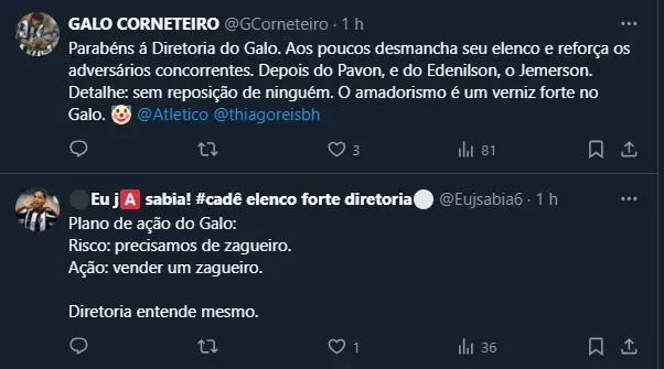 Atleticanos criticam a saída de Jemerson