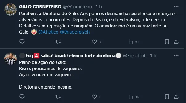 Isto é, apesar da derrota por 2 a 0 para o Peñarol (URU) na rodada passada da Libertadores, o Galo vem em ascensão e tem apresentado um futebol agradável, aprovado pelos seus torcedores.